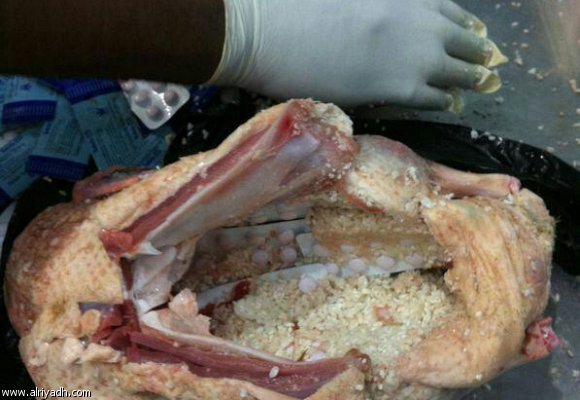 وعلي الفور تم إعداد كمين امنى وأثناء دخول الراكب الكمين تم تفتيشه حيث عثر بحوزته علي بطتين مذبوحتين وبداخلها 90 شريط من الترامادول المخدر.